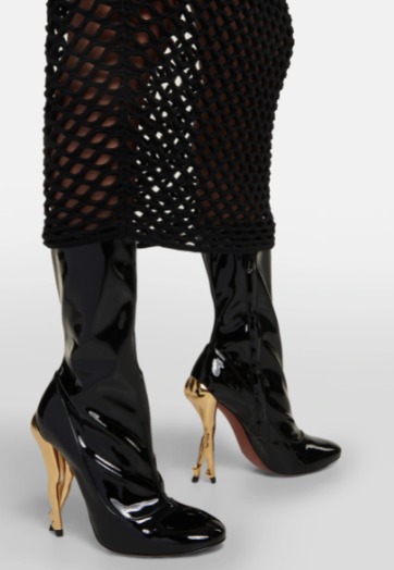 キャバレーフェイクレザーアンクルブーツは、大注目の新着のブーツ、彫刻的なヒールには美しいゴールドの足がセットされています。