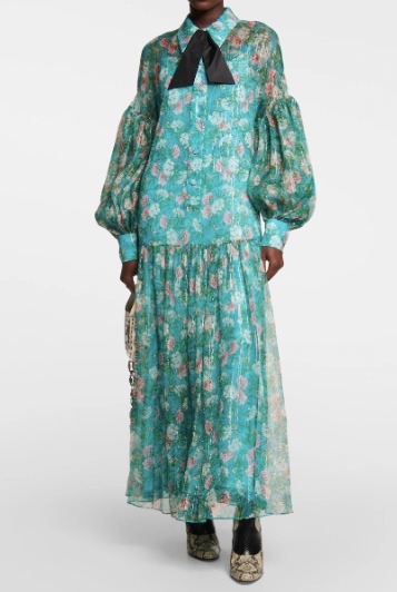 GG ジャカード シルク ミディドレス フローラルプリーツシルククレポンヌドレス