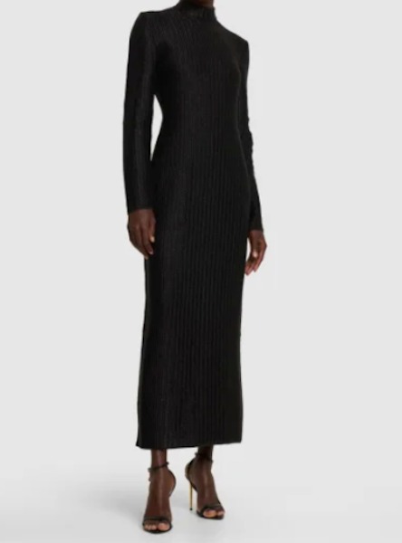 トムフォードメタリックリブニットドレスは、ブラック・57% 綿, 29% バージンウール, 14% ポリエステル製のドレス、コーデが多様な冬のニットドレスです。