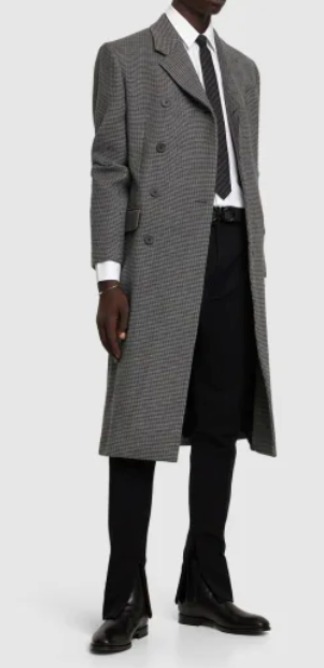 ダブルブレステッドコートは、グレーのチェック・75% バージンウール, 25% ポリアミド製のアウター、アシンメトリーなボタン開閉がモダンなムードを添えるエイジレスな美しいコートです。